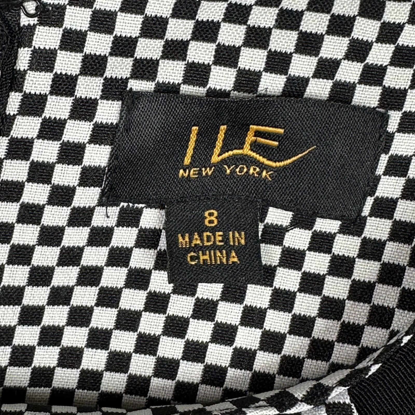 I LE Stretch Sheath Dress 8 Black Check Sleeveless Career Party Work Sexy NEW I LE